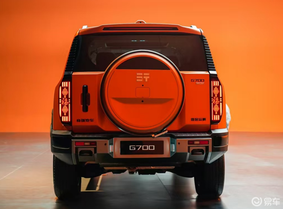 捷途G700采用了四平八稳的经典越野车设计,包括越野风格包围、全地形AT轮胎、外挂备胎以及行李架等都配齐了,其长宽高分别为5198/2050/1956mm,轴距为2870mm,拥有35°接近角、28°离去角、320mm最大离地间隙以及970mm的涉水深度。内饰配备三辐式平底多功能方向盘、怀挡式换挡杆、15.6英寸悬浮式中控屏以及一块35.4英寸贯穿式显示屏,提供5座和6座(2+2+2)两种选择,顶配和次顶配车型还拥有车载冰箱、17.3英寸后排娱乐屏、电动侧踏板和空气悬架。动力上搭载2.0T发动机+P3+P4三电机,系统总功率为665kW,并采用非承载式车身+三把锁,电池容量为34.1度,油箱容积为100L,满油满电综合续航1400公里,辅助驾驶方面搭载华为乾崑智驾ADS 4.0系统。