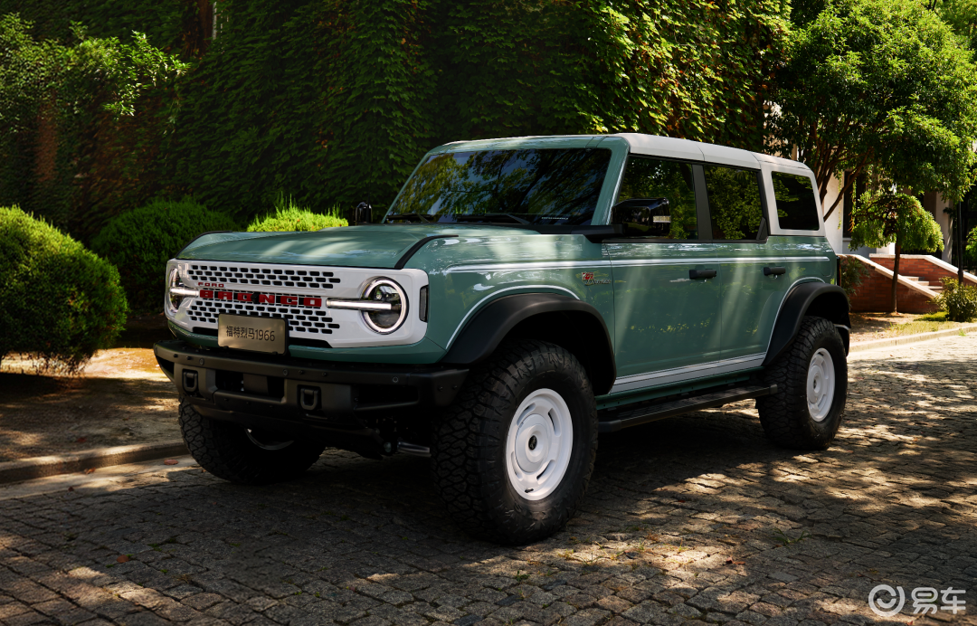 新车在外观上融入了多项向初代车型致敬的复古设计元素,比如前脸采用白色格栅搭配红色"BRONCO"英文标识,提供双色涂装(如知更鸟蓝、水晶石绿等),配备专属复古样式轮圈和60周年专属徽章,当然作为专业越野车,烈马1966继续提供了非承载式车身、前/后桥电控机械差速锁、EMOD智能全时四驱系统、G.O.A.T.全地形智能管理系统、智能前防倾杆断开功能,车内配备的双12英寸屏幕和高通骁龙8155芯片,保证了娱乐性和车机系统的流畅度。动力部分,新车提供2.3T EcoBoost涡轮增压发动机+10速手自一体变速箱的组合,至于两款车更推荐谁,如果追求极致的越野性能,那么大脚版无疑更适合你,但若你更看重复古造型和性价比,标准版就已足够。