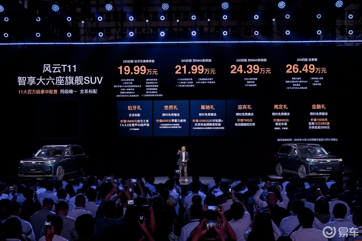 随着风云T11预售的正式开启,这款超安全、大空间、更豪华、好智慧的“智享大六座旗舰SUV”已整装待发,旨在以其顶格的产品实力,成为中国高端家庭用户的理想之选,陪伴他们驶向更加精彩纷呈的生活旅途。