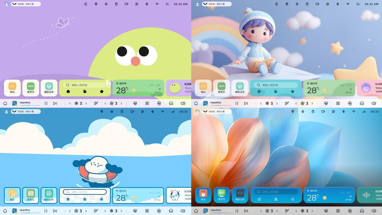 个性化主题定制系统:车机内含主题商店提供海量个性化资源:涵盖多样动态与静态壁纸,及多套精美主题,并支持用户自行上传图片作为壁纸使用,长期运营,持续更新,为用户带来源源不断的新鲜体验。