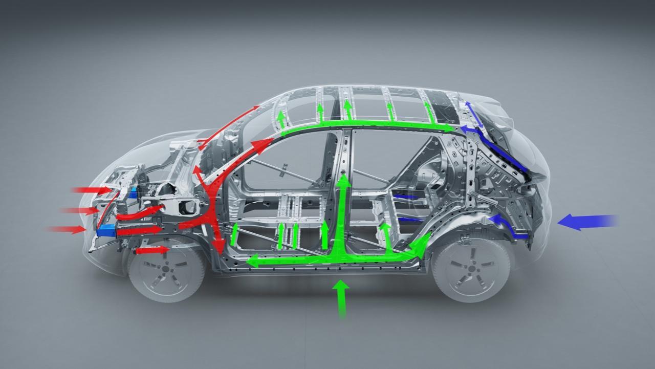 三大吸能结构系统,碰撞冲击力轻松化解:五环高强钢车身构建完整、平顺的碰撞传力路径设计,实现碰撞冲击力轻松化解。182mm前梁吸能盒设计,碰撞吸能提升70%,主要舱零件损坏率降低20%,小碰不伤梁,低速剐蹭省去大梁维修烦恼;侧碰时冲击力经由B柱向门槛、座椅横梁及顶梁三路径力传导,B柱侵入量降低14%,吸能效率提升15%以上;底部三横梁传力结构,侧碰受力牢牢接住,确保乘员舱不变形。