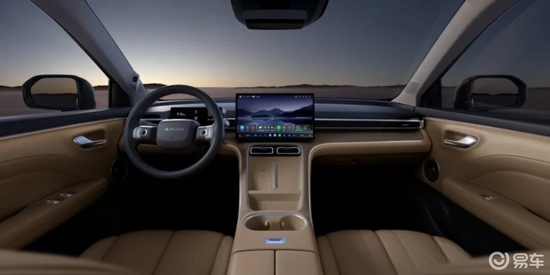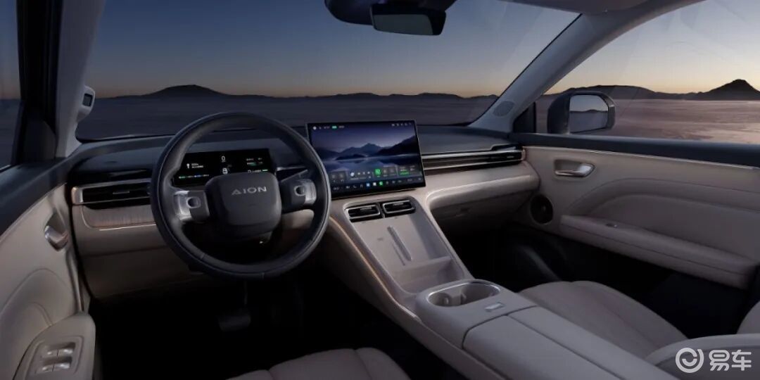 内饰方面,新车与AION V一样采用极简的设计风格,具体来看,方形悬浮式中控屏和仪表盘,屏幕尺寸目前并未公布,能看到中控屏幕下方是两个无线充电面板。内饰提供燕麦奶白、暖绒浅棕、大溪地灰3种颜色。