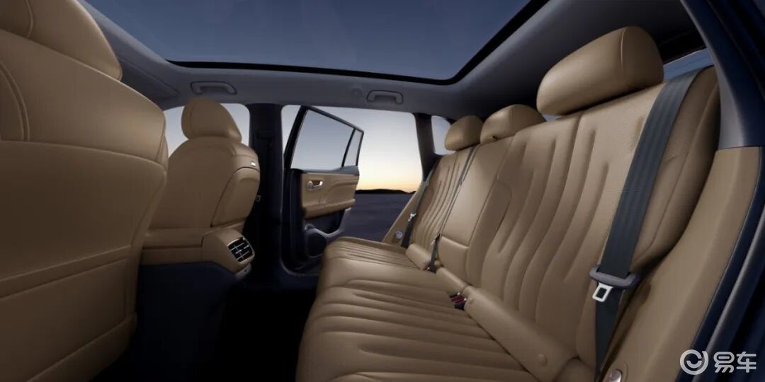 车身尾部,采用双层式的贯穿尾灯设计,中央带有自发光车标,尾灯也设计了辅助驾驶小蓝灯。新车后排车门可以接近90度开启,配备电动尾门,另外,增程版车型采用隐藏式排气布局。