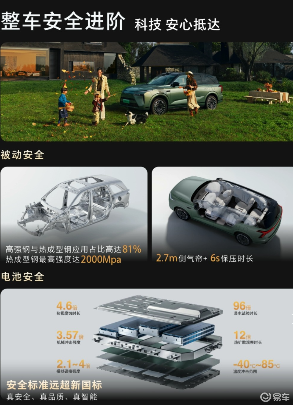 新车延续长城汽车“过度投入”传统,构筑全维安全体系:车身81%采用高强钢与热成型钢,关键部位强度达2000兆帕;电池安全测试远超国标,模拟碰撞加速度、盐雾腐蚀测试时长等多项指标均大幅优于国标要求;超30项智能辅助功能加持,AEB自动紧急制动功能已标配,明年第二季度还将推送AES自动紧急避让系统和RAEB;座舱采用CIAA认证抗菌皮革、生态肤感NAPPA真皮,实现VOC婴⼉级空气质量控制。