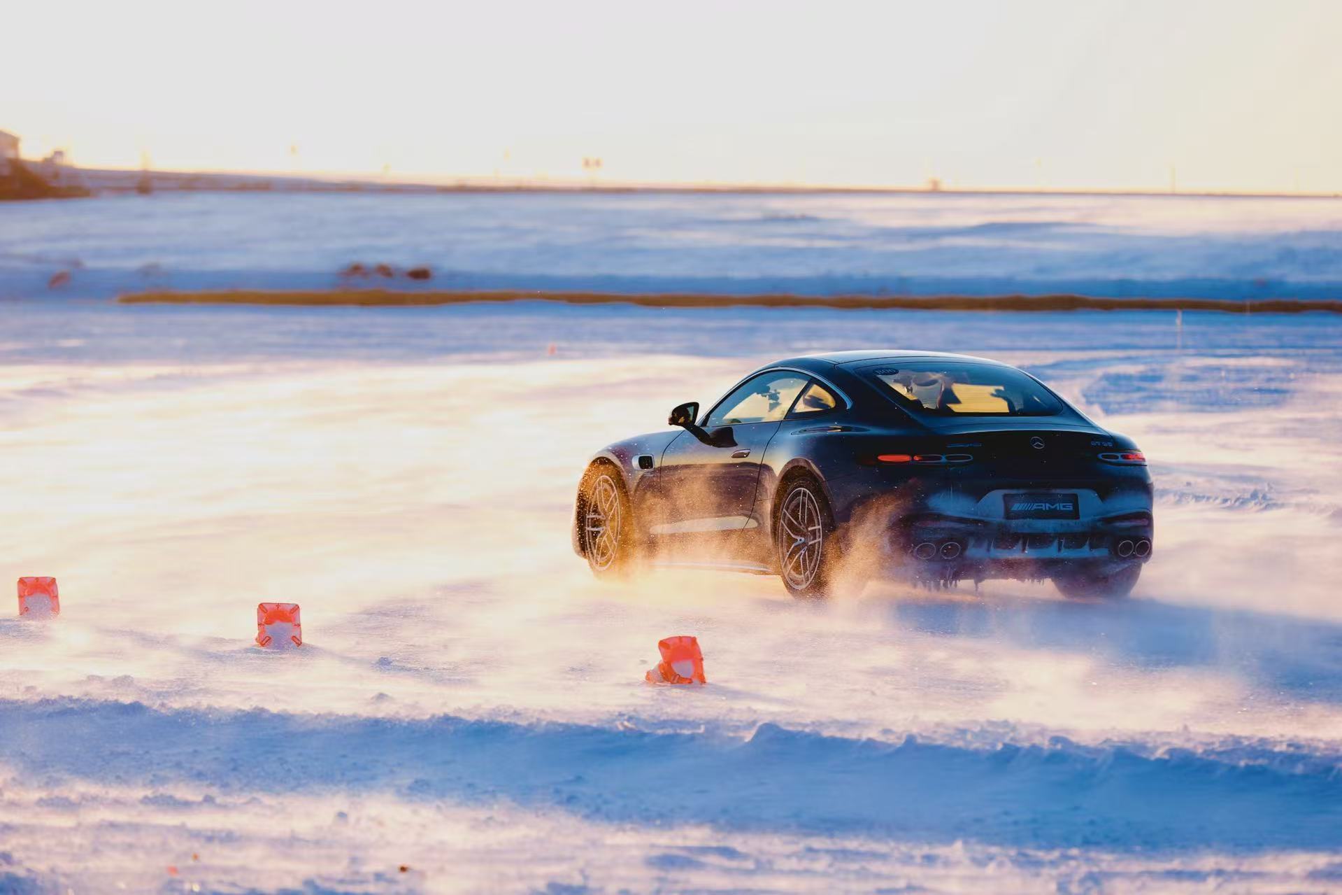 关掉ESP的瞬间,又像打开了另一个世界。车辆动力输出更直接,却无“脱缰”野劲。冰面红牛环赛道的快速弯里,轻踩油门,车尾微微滑动又迅速回正,轮胎划过冰面的声响与冰排碰撞的回音交织,这份可控的漂移乐趣,是上海城市道路永远给不了的酣畅。AMG GT 50后驱版,“一人一机”的M139发动机迸发421马力,漂移模式下电子后轴差速锁精准分配动力,跟着教练指令轻打方向、稳控油门,冰面上的流畅弧线,是写给2025年最热烈的收尾。