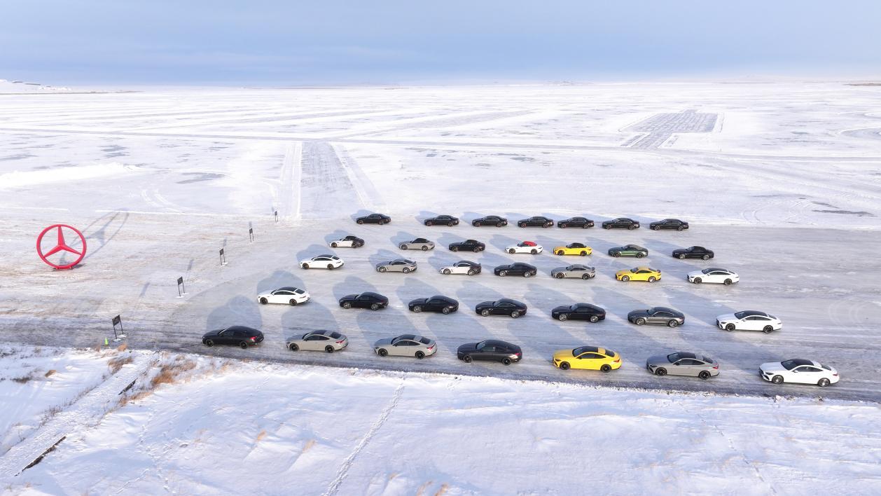 当然了,更震撼的其实是奔驰在冰雪试驾上的大手笔与诚意:520万平方米冰原上,15条赛道如银色绸带铺开,15款核心车型、117台试驾车集结,总价值高达2亿。