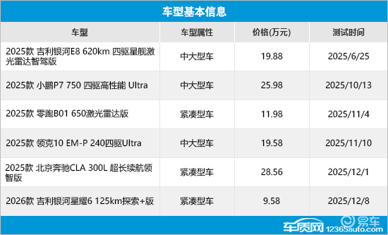 在辅助驾驶跟车距离调节测试对比中,6款车型的调节步骤均为1步,且调节速度表现出色。不过在车距调节方面,小鹏P7和领克10 EM-P支持5档车距调节,而2025款吉利银河E8(以下简称:银河E8)和2026款吉利银河星耀6(以下简称:银河星耀6)两款吉利银河品牌车型则表现一般,仅支持3档车距调节。此外,在最近跟车距离方面,小鹏P7、领克10 EM-P和银河星耀6测试成绩不太理想。