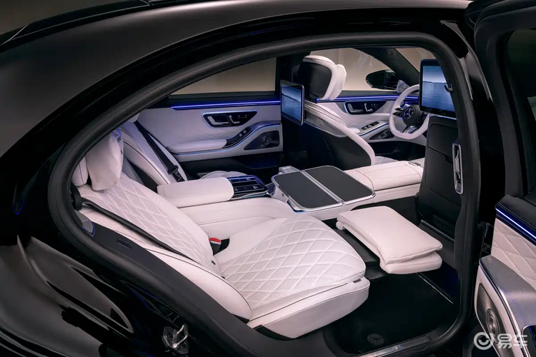 智能化配置延伸至后排。后排配备了两块13.1英寸的独立娱乐显示屏,并为乘客提供两个可完全拆卸的MBUX触控遥控器。在舒适性配置上,前排座椅据称内置最多19个调节电机,提供多种按摩模式。新车还首次为安全带加入了加热功能。