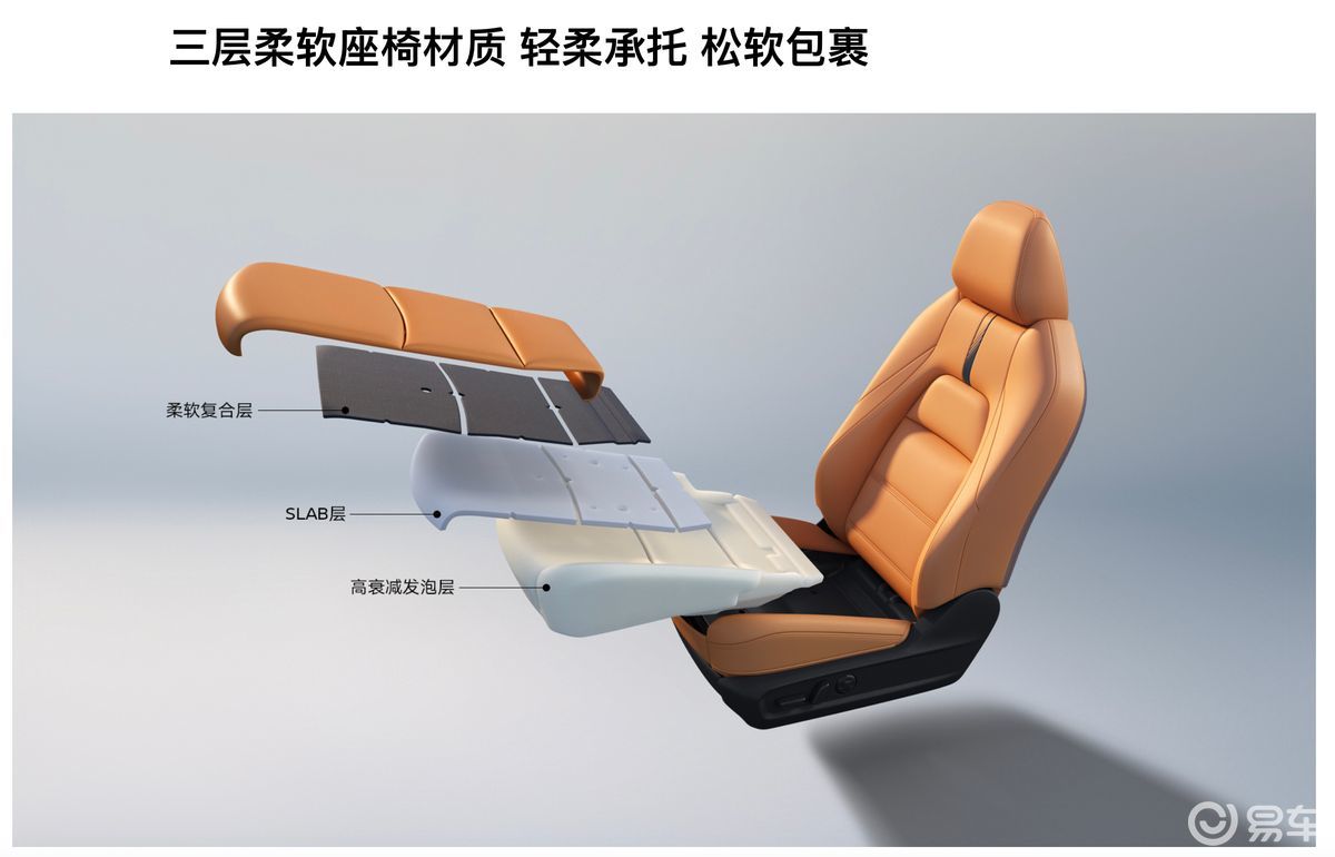 另外座椅舒适度的确值得一夸,专为防晕眩设计的T-shape型座椅结构、三层柔软座椅材质(柔软复合层轻柔,中层SLAB层低反作用力缓冲、高衰减发泡层柔和下沉),需要大量数据积累并提升,这种细节无法通过数据直观展示,却能带给乘客更舒适的乘坐体验,友商确实需要好好学习。