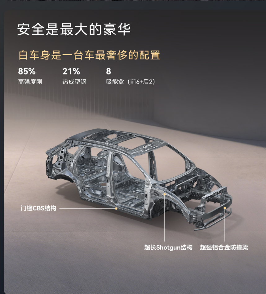 安全方面,磐石车身的高强度钢占比达到85%,热成型钢占比21%。