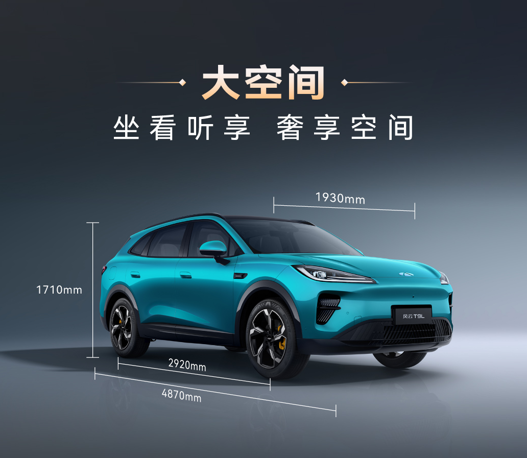 风云T9L定位是智美大五座SUV,车身尺寸是车长4870mm、轴距2920mm。