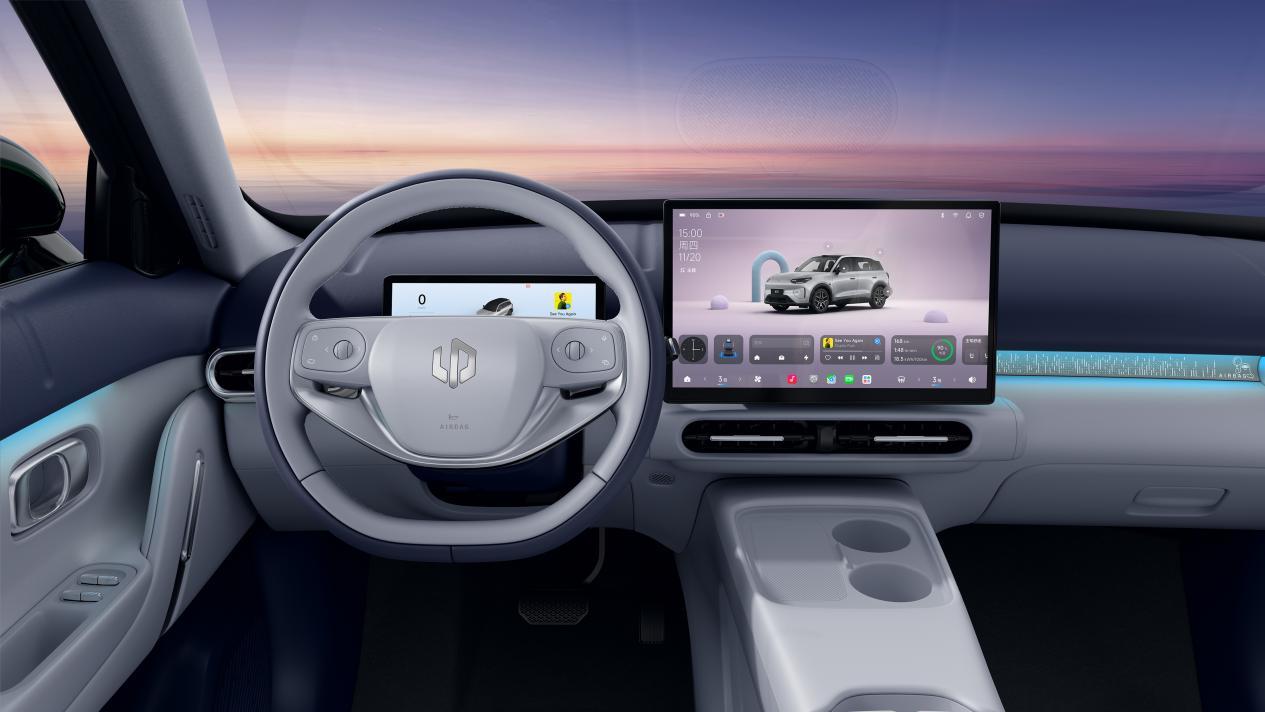 座舱内部,零跑A10更是将舒适与精致做到了极致。1.55㎡超大全景天幕搭配99.9%紫外线隔绝率与100%遮光电动遮阳帘,兼顾视野与防晒;2.63㎡超大软包覆盖面积,让触手可及之处皆柔软,彻底告别廉价塑料感。更值得一提的是,座椅面料获得欧盟OEKO母婴级最高认证,达到婴幼儿皮肤直接接触标准,再加上环氧大豆油基材、水性环保胶等健康选材,打造出真正的全域健康座舱。行业首创的悬浮式IP Bar,支持氛围灯、香薰、安全锤等官方DIY附件,让用户可随心打造专属座舱空间。
