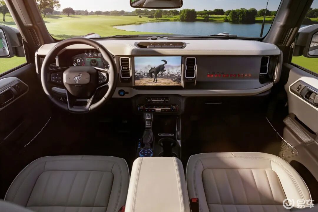 新车在外观上融入了多项向初代车型致敬的复古设计元素,比如前脸采用白色格栅搭配红色"BRONCO"英文标识,提供双色涂装(如知更鸟蓝、水晶石绿等),配备专属复古样式轮圈和60周年专属徽章,当然作为专业越野车,烈马1966继续提供了非承载式车身、前/后桥电控机械差速锁、EMOD智能全时四驱系统、G.O.A.T.全地形智能管理系统、智能前防倾杆断开功能,车内配备的双12英寸屏幕和高通骁龙8155芯片,保证了娱乐性和车机系统的流畅度。动力部分,新车提供2.3T EcoBoost涡轮增压发动机+10速手自一体变速箱的组合,至于两款车更推荐谁,如果追求极致的越野性能,那么大脚版无疑更适合你,但若你更看重复古造型和性价比,标准版就已足够。