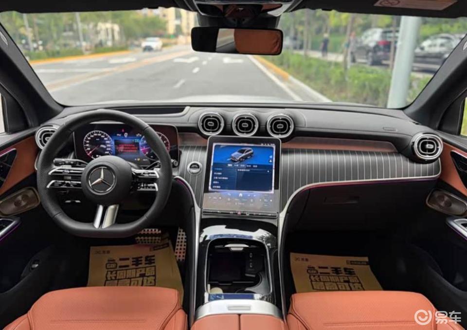 很多人之所以选择奔驰,就是因为奔驰的座舱设计很有格调,奔驰GLC的中控台要比同级别的宝马、奥迪更具现代工艺之美,尤其是在氛围灯的烘托下,炮筒式空调出风口、棕黑撞色主色调、镀铬装饰板,豪华与科技并存。此外,新车配备了11.9英寸多媒体屏幕,液晶仪表盘的尺寸为12.3英寸,还有HUD抬头显示、高通骁龙8295芯片,语音助手、远程控制等车机功能也均有配备。