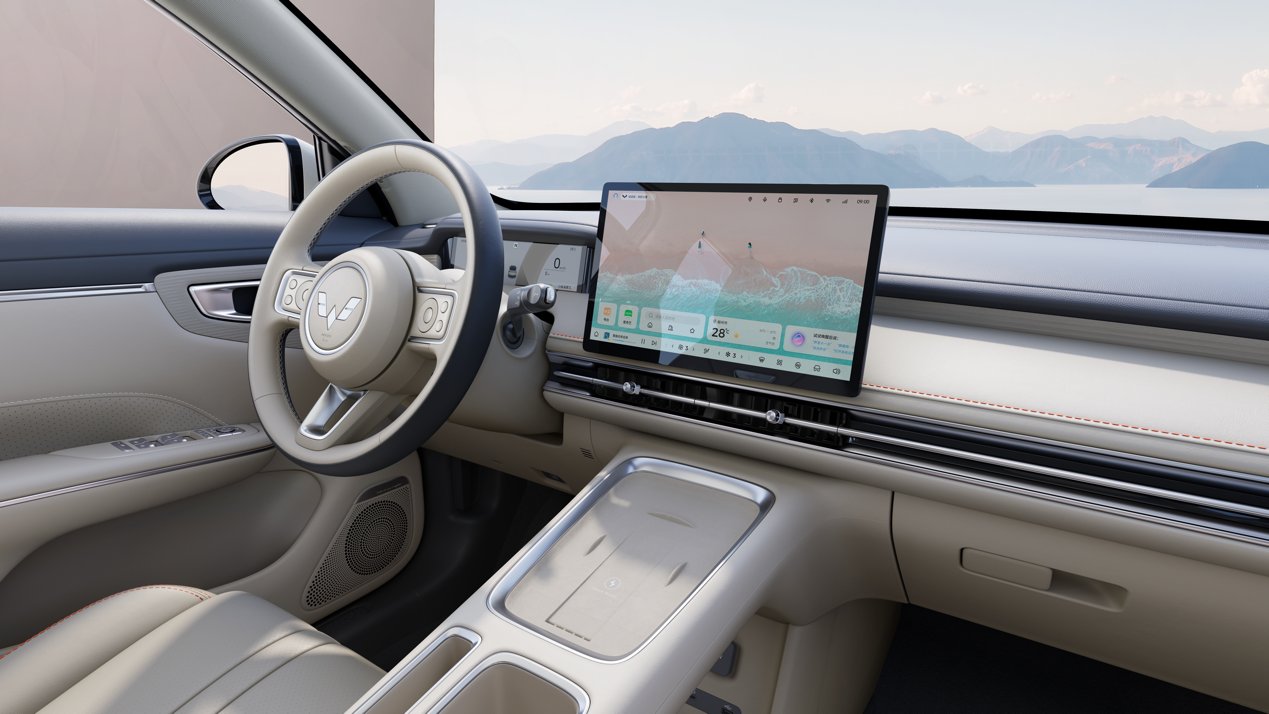 座舱整体线条设计舒展流畅,通过巧妙的色彩搭配和材质运用,勾勒出开阔通透的视觉空间。当车门开启的瞬间,用户即刻踏入这个私享的疗愈空间,在城市喧嚣之外觅得一方宁静天地。