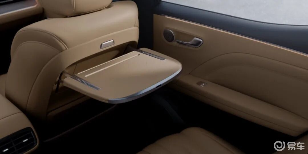 车身尾部,采用双层式的贯穿尾灯设计,中央带有自发光车标,尾灯也设计了辅助驾驶小蓝灯。新车后排车门可以接近90度开启,配备电动尾门,另外,增程版车型采用隐藏式排气布局。