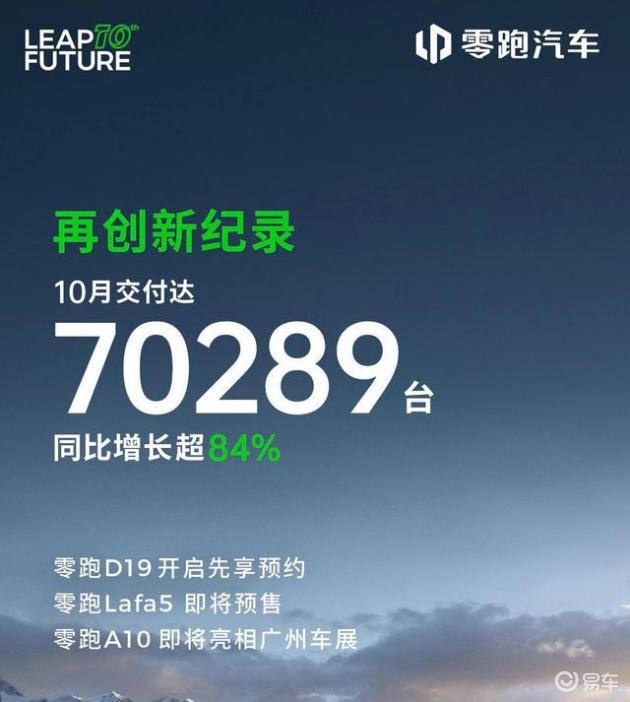 最新数据显示,零跑汽车10月销量超过7万辆,连续8个月蝉联造车新势力销量冠军,年度销量目标完成率已超过90%。基于此市场表现,零跑汽车上调了今年的年度销量目标,并提出2026年达到100万辆的销量目标,同时力争实现全年5-10亿元的净利润。