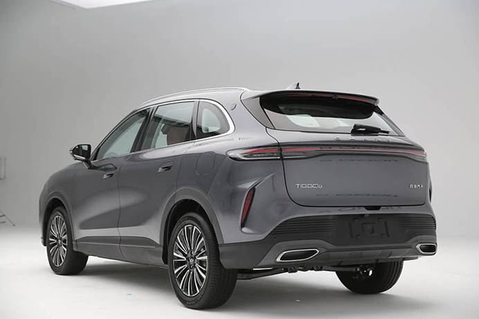 侧面造型,全新奇瑞瑞虎8的虎款和豹款保持一致,均配备半隐藏式门把手,并配备相同样式的19英寸轮圈。而车尾换装了全新样式的贯穿式尾灯,“CHERY”标识位于尾灯上方,整体造型更加饱满圆润。细节方面,两款车型下包围有所区别,分别采用隐藏式排气和双边共两出式排气装饰。尺寸方面,新车的长宽高分别为4749/1880/1710mm,轴距为2825mm,定位中型SUV。