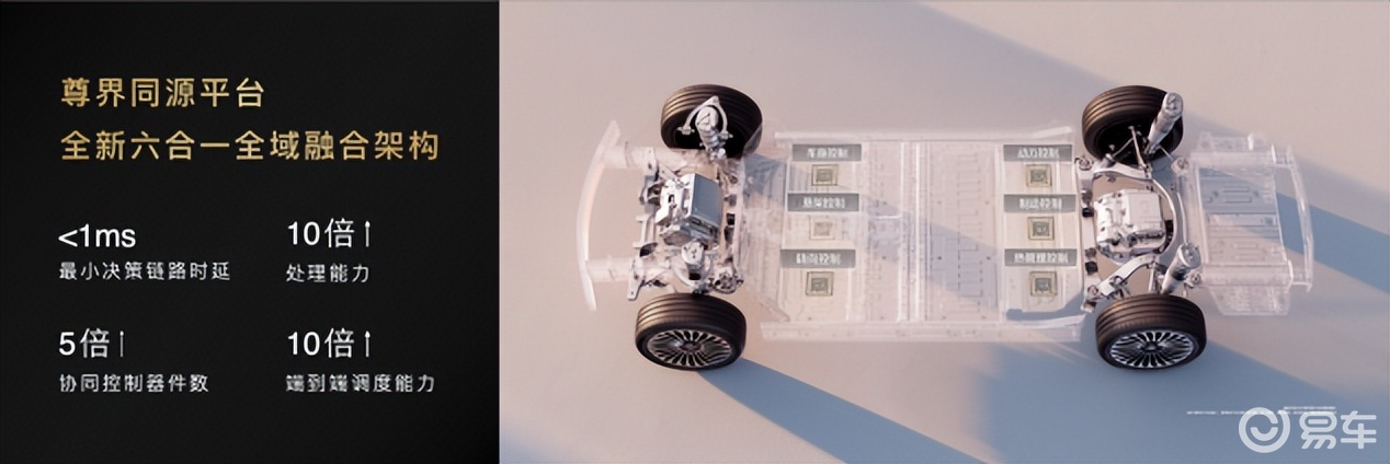 以智能驾驭性能,新款享界S9升级全新一代华为途灵平台,让豪华更从容。新车采用前独立双叉臂,后五连杆悬架设计,标配5档可调的智能空气悬架,全新连续可变阻尼减振器,操控与舒适兼得,机械质感媲美百万豪车;升级尊界同源的全新六合一全域融合架构,决策时间更短,调度能力更强,搭配华为乾崑智驾ADS 4、时空智能悬架网络、HUAWEI XMOTION Control智能车身协同控制及HUAWEI DATS动态自适应扭矩控制等多项技术的协同配合,如同赋予了新款享界S9底盘“明亮的眼睛”、“聪明的大脑”以及“强壮敏捷的四肢”。在出行中,车辆提前路况预瞄,路况空间模型分辨率提升100倍[10],并通过高效智能思考,精细化协同控制,紧急避障精准操控、颠簸路、坑洼路游刃有余。在中汽中心麋鹿测试中,更是取得了84.1km/h[11]的优势成绩,为用户带来颠覆性的操控性能。