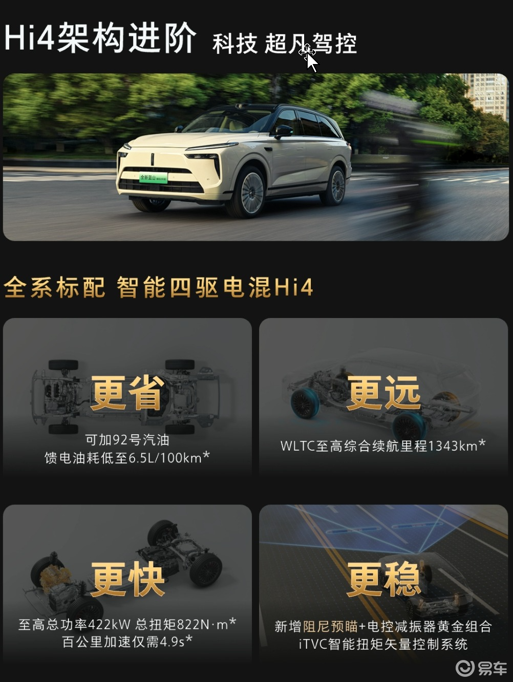 新车搭载全球首创四挡全速域直驱的Hi4性能版智能四驱技术,以“都江堰智慧”实现全场景“省、远、快、稳”。其零百加速仅4.9秒,馈电油耗低至6.5L/100km,综合续航可达1343km,同时通过前后50:50轴荷分配与iTVC智能扭矩控制,保障全家出行安稳。升级的底盘阻尼预瞄功能可提前识别减速带并调整悬挂软硬,真正实现用两驱的钱买四驱的性能。