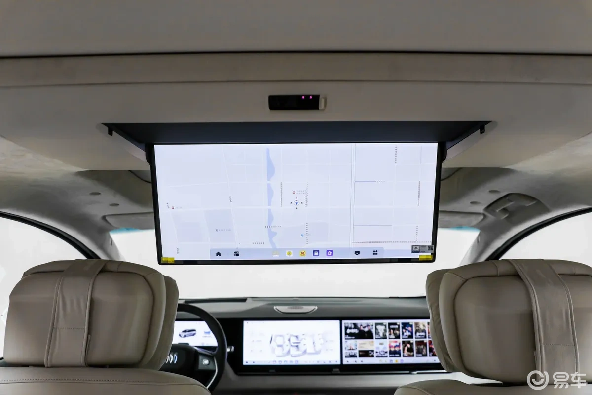 尽管纯电版的完整配置尚未公布,但我们可以从已上市的插混版身上窥见其旗舰级的内饰与智能水准。座舱内最吸引眼球的莫过于多屏联动系统:包括16.3英寸的中控屏与副驾娱乐屏、21英寸的4K后舱智慧屏以及一块50英寸的AR-HUD抬头显示,共同构建了一个沉浸式的数字空间。高通最新一代SA8775P芯片为这套系统的流畅运转提供了算力保障。