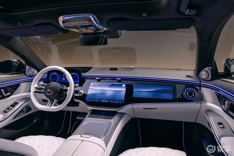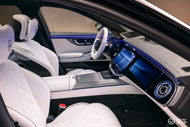 智能化配置延伸至后排。后排配备了两块13.1英寸的独立娱乐显示屏,并为乘客提供两个可完全拆卸的MBUX触控遥控器。在舒适性配置上,前排座椅据称内置最多19个调节电机,提供多种按摩模式。新车还首次为安全带加入了加热功能。