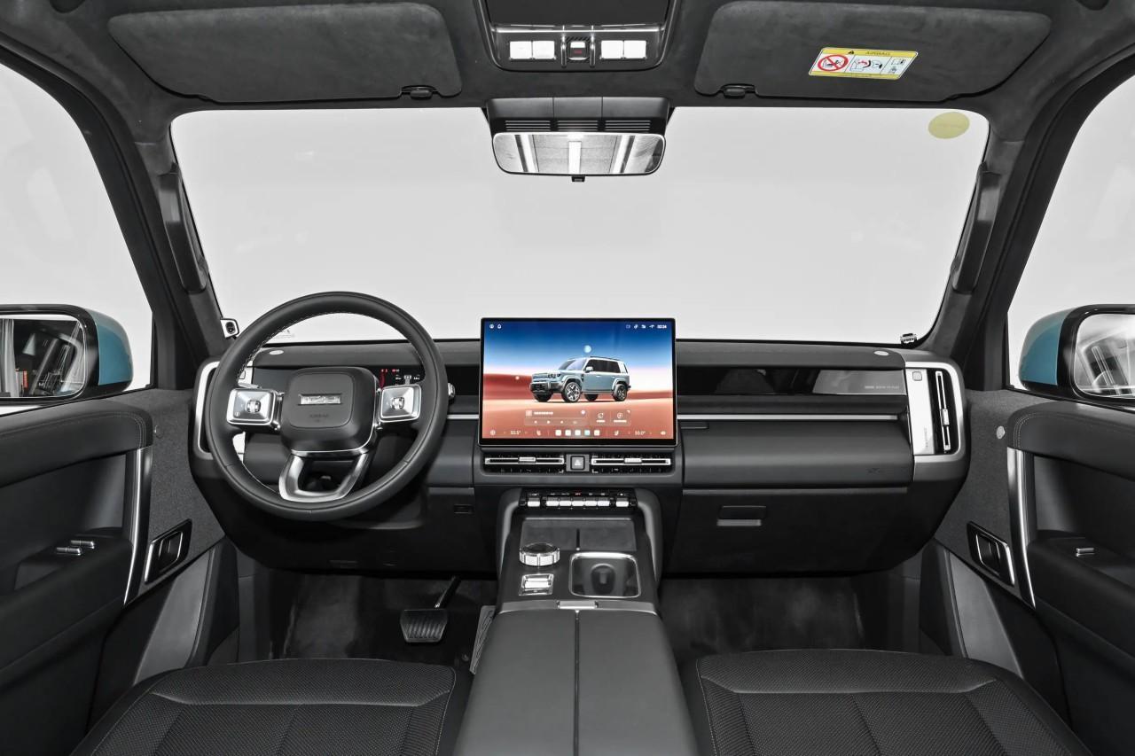内饰部分延续家族风格,中控台的线条处理都比较硬朗,且保留了一排实体按键。天窗挺有意思,采用左右分隔的布局。动力部分,搭载一套增程系统,提供后置电机和双电机四驱两个选择。续航部分,纯电续航最高预计超200km,综合续航里程超1200km。