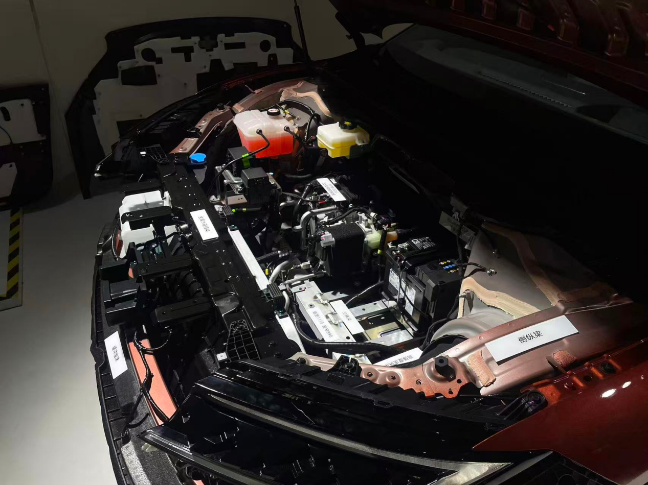 首先是车身安全。铂智7车身结构中,高强度钢和铝合金占比达到73%,最高强度达2GPa,车头部分采用“六纵三横两竖”的机舱框架,有效提升抗冲击能力。