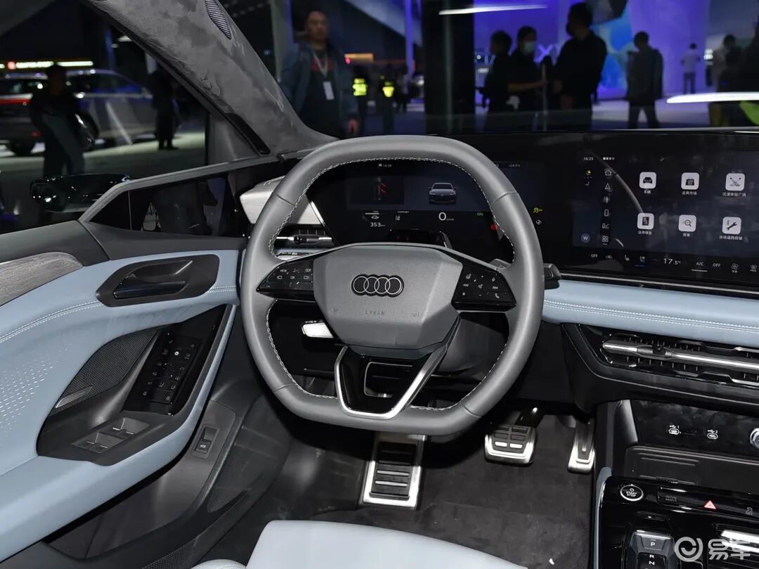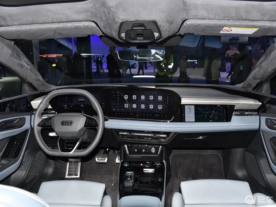 内饰方面,奥迪A6L e-tron整体设计与全新奥迪A6L类似,提供11.9英寸的奥迪虚拟驾驶舱(液晶仪表屏)、14.5英寸中控MMI触摸显示屏、10.9英寸副驾娱乐屏以及第二代增强现实抬头显示AR-HUD。副驾娱乐屏配备主动隐私模式,确保乘客在观看影片等娱乐内容时不会分散驾驶员的注意力。换挡机构为小巧的电子滑块样式,保留实体一键启动按键。