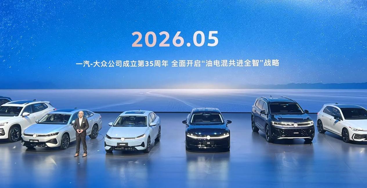 王胜利在发布会上强调:“2026年5月就是一汽大众公司成立35周年,将全面开启‘油电混共进全智’战略。”