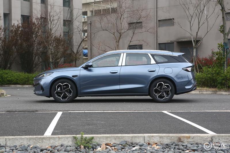 车身侧面,新车整体沿袭了三厢版海豹06DM-i车型的设计,而区别则在于旅行版的车尾多了一个性感的“大屁股”。