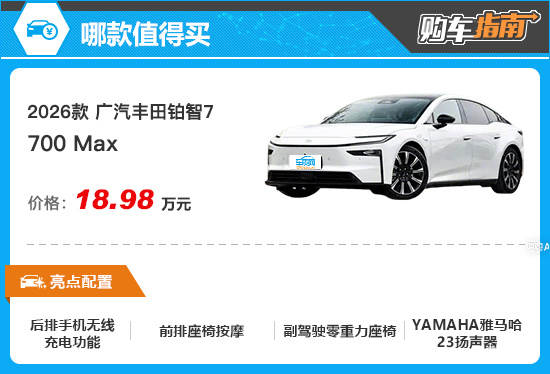 综合来看,2026款广汽丰田铂智7 700 Max值得推荐,购车时可优先考虑。